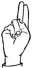 На ћирилици написано БЕРИША МИЛИЋЕВИЋ састоји се из 15 слова [?]. Исписано ћириличном једноручном азбуком за глувонеме: